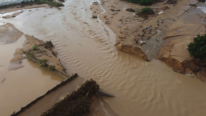 Vỡ hồ chứa nước ở xã Tuy Phong, Lâm Đồng, (Bình Thuận cũ). Ảnh: Bùi Toàn