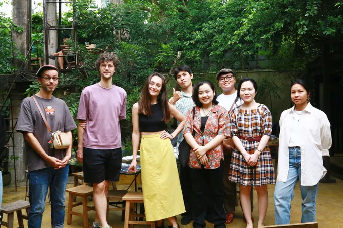 Hanae Bossert (thứ 3, từ trái qua) tại sự kiện vẽ minh họa trực tiếp do Viện Pháp tại Việt Nam tổ chức ở TPHCM. Ảnh: Viện Pháp tại Việt Nam